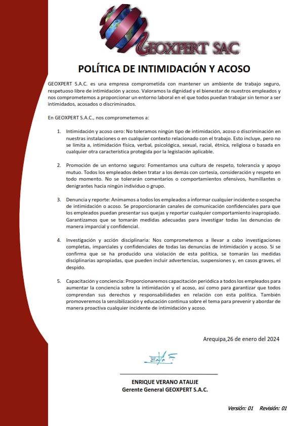 POLÍTICA DE INTIMIDADCIÓN Y ACOSO