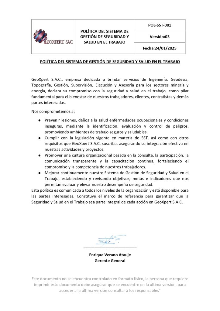 POLÍTICA DEL SISTEMA DE GESTIÓN DE SEGURIDAD Y SALUD EN EL TRABAJO